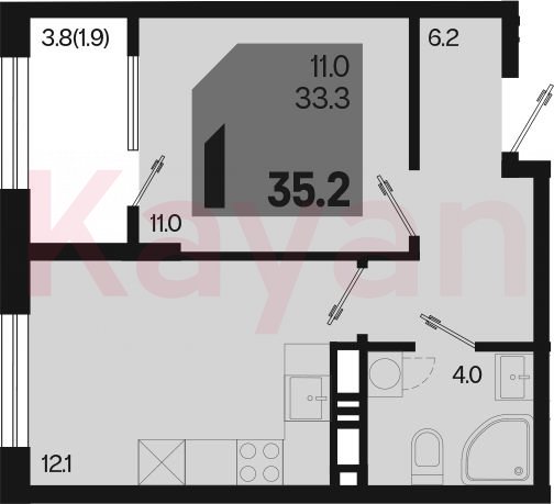 Продажа 1-комн. квартиры, 33.3 кв.м