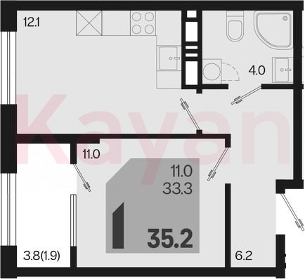 Продажа 1-комн. квартиры, 33.3 кв.м