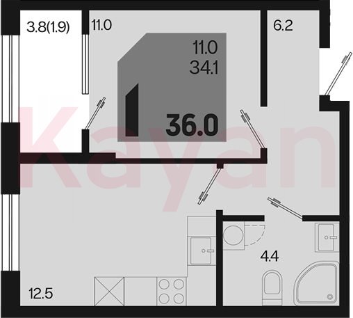 Продажа 1-комн. квартиры, 34.1 кв.м