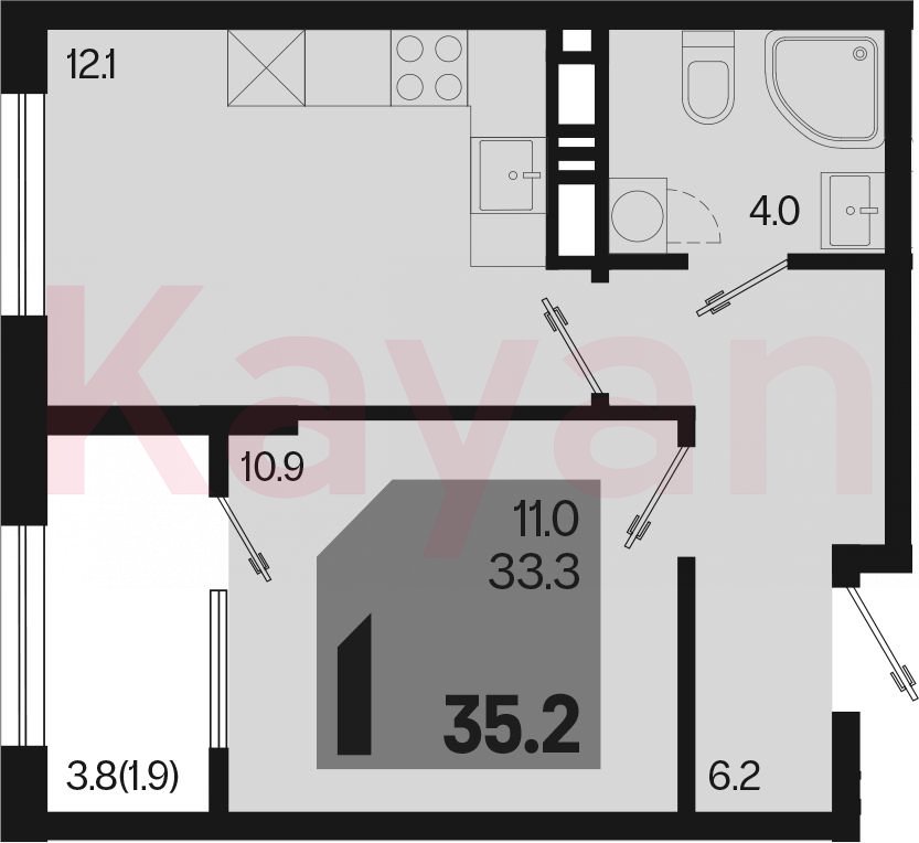 Продажа 1-комн. квартиры, 33.3 кв.м