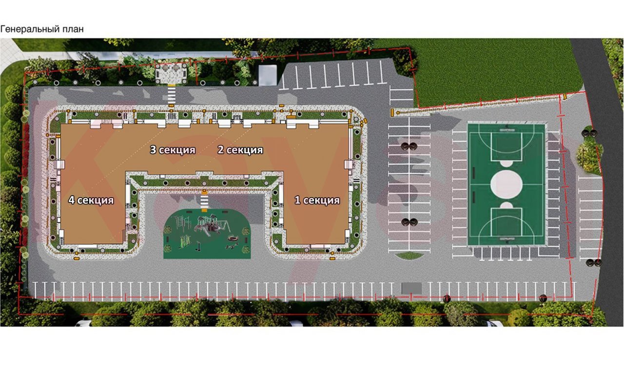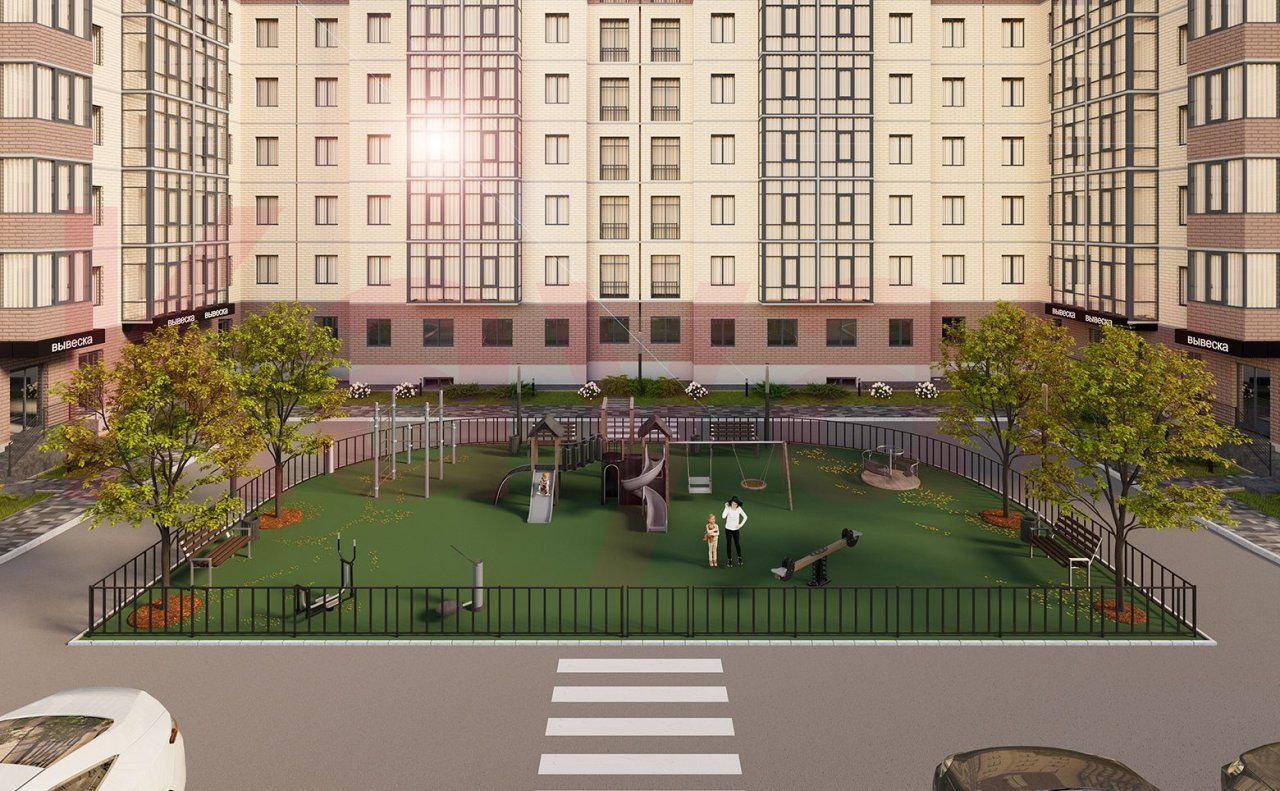 На территории комплекса выполнен ландшафтный дизайн, установлена спортивная площадка с тренажерами и специальным мягким покрытием, и детская площадка для игр детей дошкольного и школьного возраста. На первом этаже расположены коммерческие помещения.