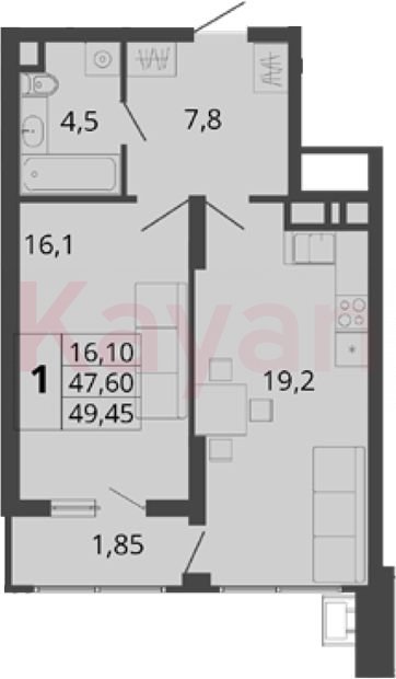 Продажа 1-комн. квартиры, 47.6 кв.м