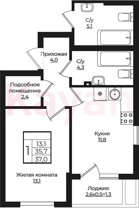 Продажа 1-комн. квартиры, 35.7 кв.м