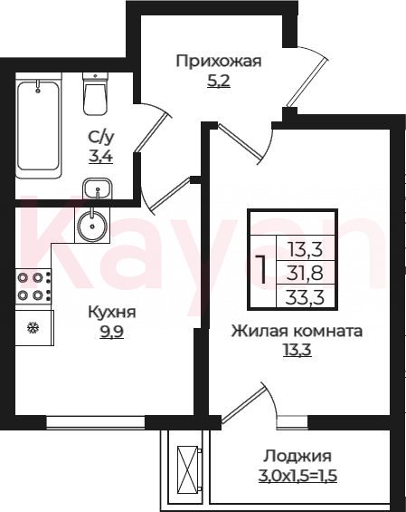 Продажа 1-комн. квартиры, 31.8 кв.м