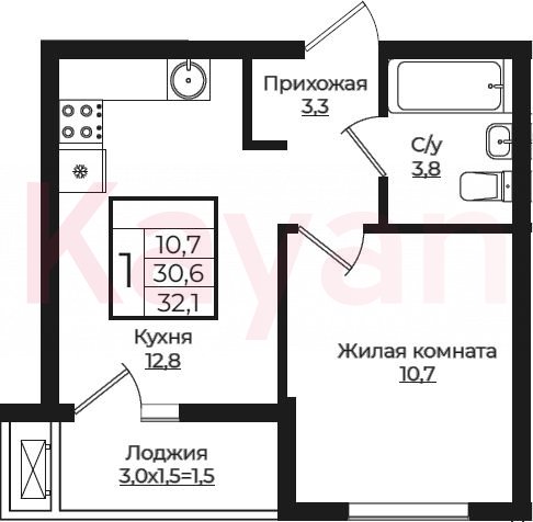 Продажа 1-комн. квартиры, 30.6 кв.м