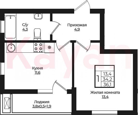 Продажа 1-комн. квартиры, 34.2 кв.м