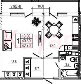 Продажа 1-комн. квартиры, 40.5 кв.м
