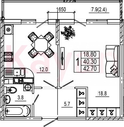 Продажа 1-комн. квартиры, 40.5 кв.м