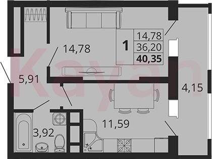 Продажа 1-комн. квартиры, 36.2 кв.м