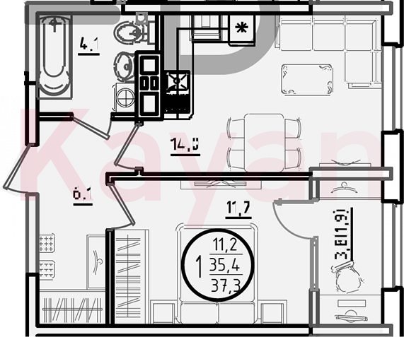 Продажа 1-комн. квартиры, 35.4 кв.м