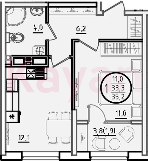 Продажа 1-комн. квартиры, 33.3 кв.м