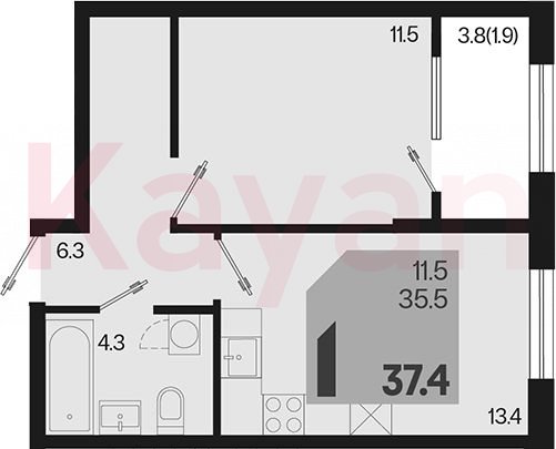 Продажа 1-комн. квартиры, 35.5 кв.м