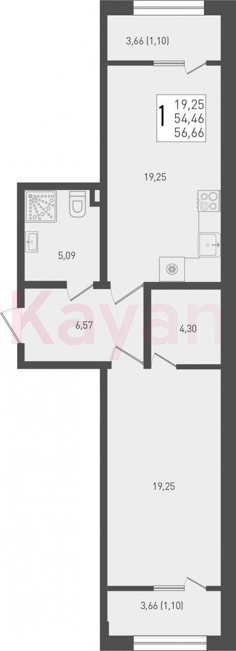 Продажа 1-комн. квартиры, 54.46 кв.м