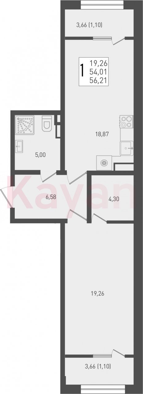 Продажа 1-комн. квартиры, 54.01 кв.м