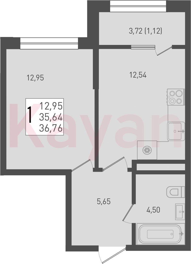 Продажа 1-комн. квартиры, 35.64 кв.м