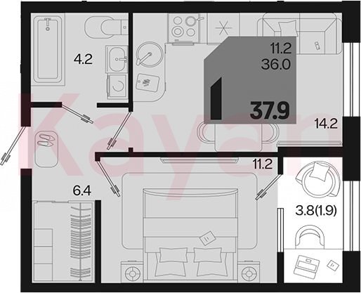 Продажа 1-комн. квартиры, 36 кв.м