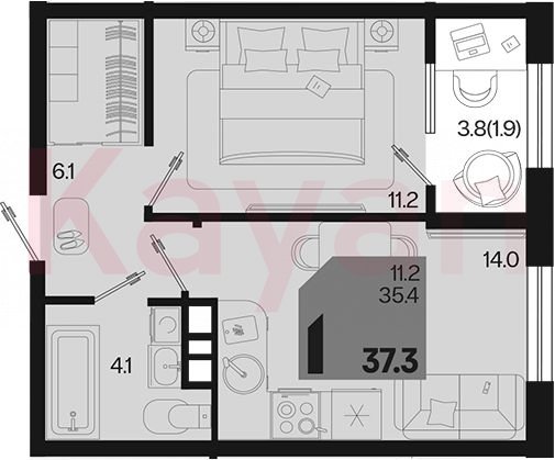 Продажа 1-комн. квартиры, 35.4 кв.м