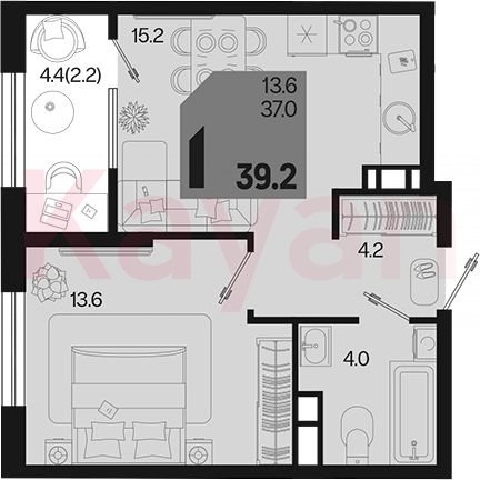 Продажа 1-комн. квартиры, 37 кв.м