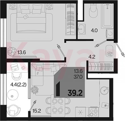 Квартира в ЖК «Первое место» (ГК Точно. Краснодарский край) литер 1.4 Л2 очередь 1, Монолитный, 1 к.кв., 37 кв.м., 17/18, высота потолков: 2.66 м, жилая площадь: 13.6 кв.м., возможна ипотека, возможна военная ипотека, площадь кухни 15.2 кв.м.,
