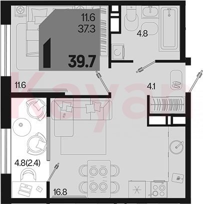 Продажа 1-комн. квартиры, 37.3 кв.м