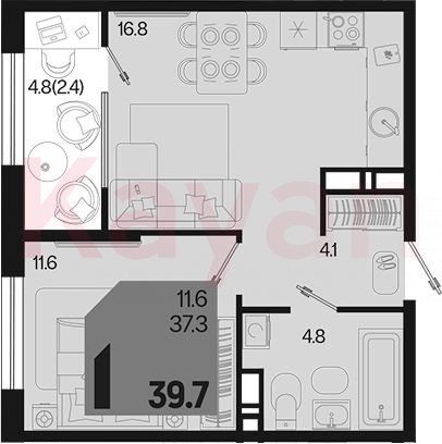 Продажа 1-комн. квартиры, 37.3 кв.м