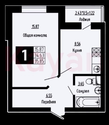 Продажа 1-комн. квартиры, 34.63 кв.м