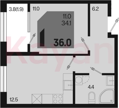 Продажа 1-комн. квартиры, 34.1 кв.м