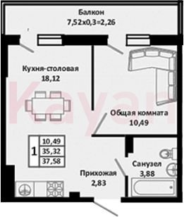 Продажа 1-комн. квартиры, 35.32 кв.м