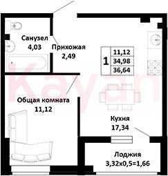 Продажа 1-комн. квартиры, 34.98 кв.м