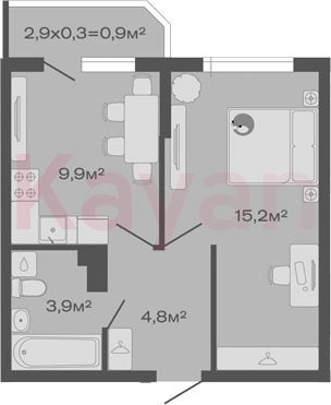 Квартира в ЖК «ДЗЕНПАРК» (Лендекс) литер 5 очередь 1, Кирпично-монолитный, 1 к.кв., 33.8 кв.м., 3/4, высота потолков: 2.7 м, жилая площадь: 15.2 кв.м., возможна ипотека, возможна военная ипотека, площадь кухни 9.9 кв.м.,
