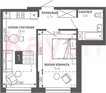 Продажа 1-комн. квартиры, 41.45 кв.м