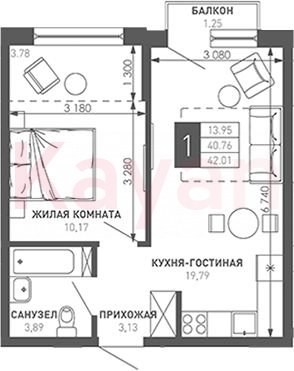 Продажа 1-комн. квартиры, 40.76 кв.м