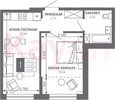 Продажа 1-комн. квартиры, 41.45 кв.м