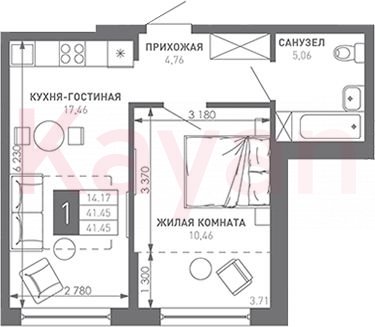 Продажа 1-комн. квартиры, 41.45 кв.м