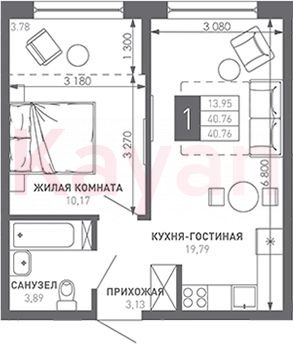 Продажа 1-комн. квартиры, 40.76 кв.м