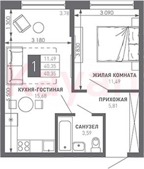 Продажа 1-комн. квартиры, 40.35 кв.м