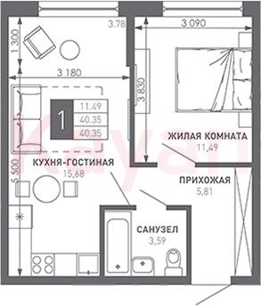 Продажа 1-комн. квартиры, 40.35 кв.м