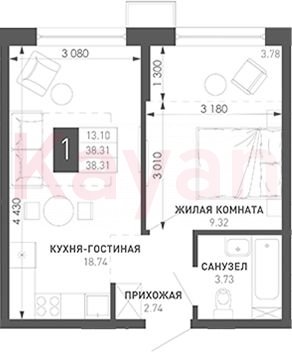 Продажа 1-комн. квартиры, 34.53 кв.м