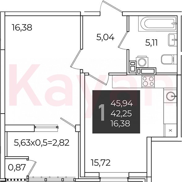 Продажа 1-комн. квартиры, 42.25 кв.м