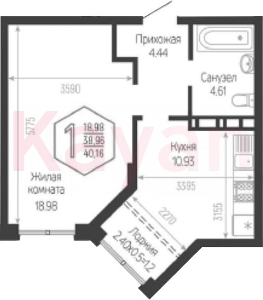 Продажа 1-комн. квартиры, 38.96 кв.м
