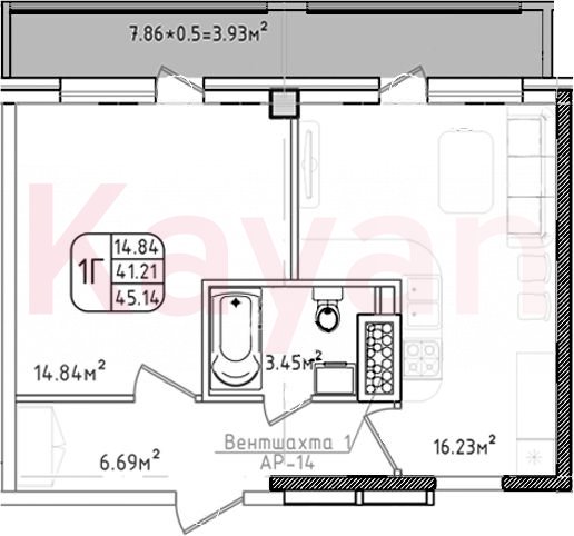 Продажа 1-комн. квартиры, 41.21 кв.м