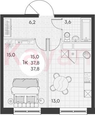 Продажа 1-комн. квартиры, 37.8 кв.м