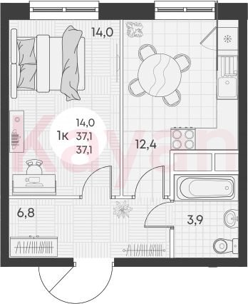 Продажа 1-комн. квартиры, 37.1 кв.м