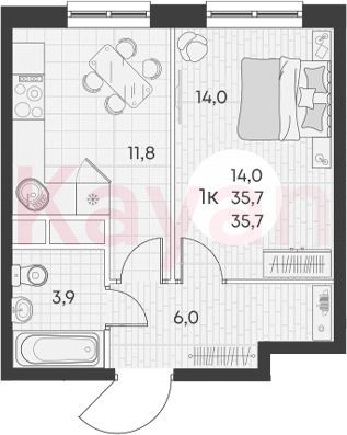 Продажа 1-комн. квартиры, 35.7 кв.м