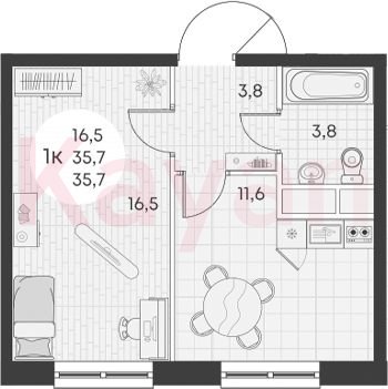 Продажа 1-комн. квартиры, 35.7 кв.м