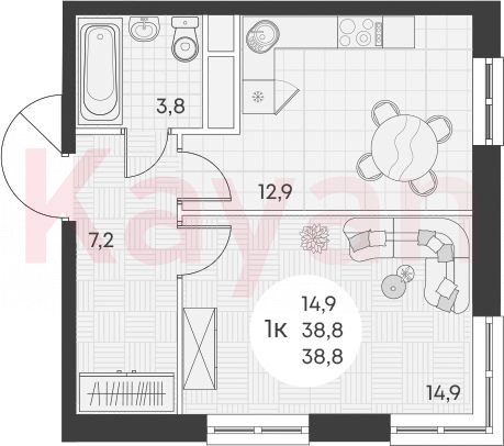 Продажа 1-комн. квартиры, 38.8 кв.м