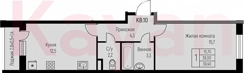 Продажа 1-комн. квартиры, 40.3 кв.м