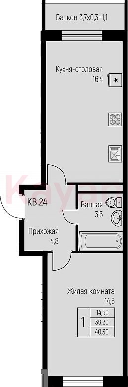 Продажа 1-комн. квартиры, 41.7 кв.м