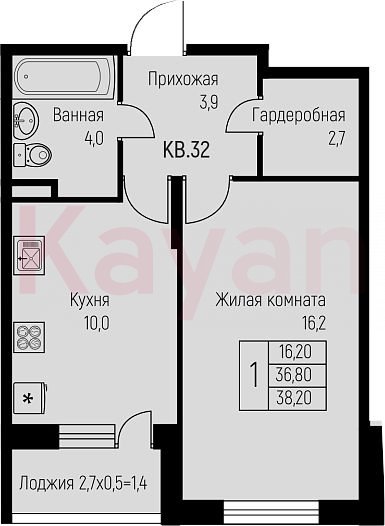 Продажа 1-комн. квартиры, 38.9 кв.м