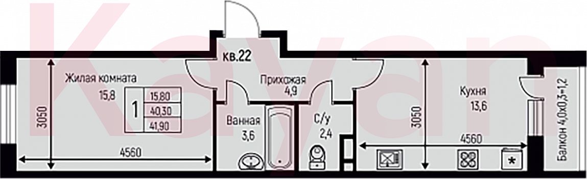 Продажа 1-комн. квартиры, 40.7 кв.м